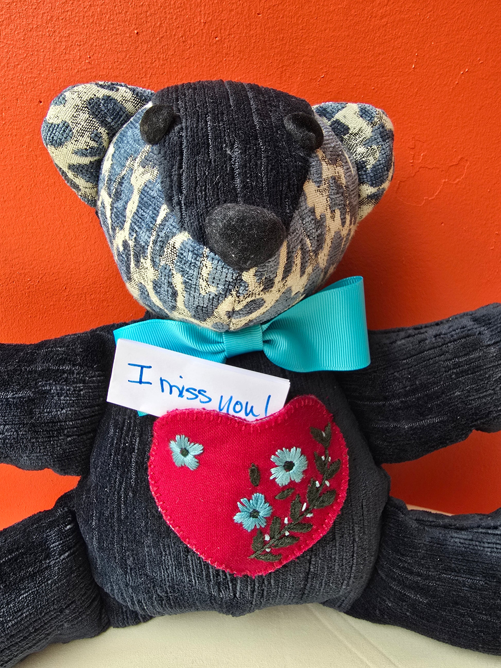 Meet our Messenger Bear, crafted with love and care by the talented women of El Salitre through our sewing program. Each bear is a unique creation, handcrafted using up-cycled fabric generously donated by Reside Home. As you hold this charming bear in your hands, imagine the warmth it brings, carrying a heartfelt message to someone special. With every purchase, you not only spread love but also directly support our sewing program, empowering women in El Salitre. Let this Messenger Bear be a token of love and solidarity, connecting hearts near and far.